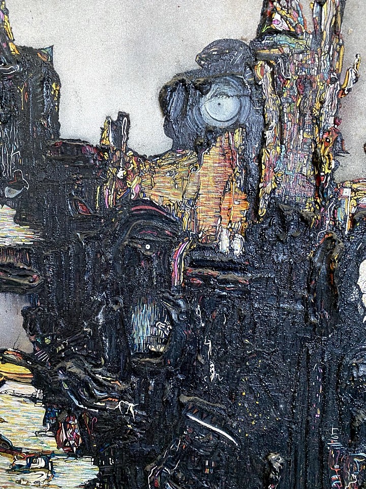 This is a detail photo shot of 51 imagination place and to show how neat and accurateThe technique I have created is on canvas.