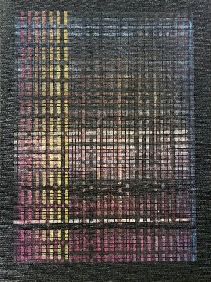 This painting is a surreal take on the place where I live but in a totally opposite composition place, form, colour and dimension. I live in a flat with no garden. This again is a surreal architectural composition of pure automatic Mark making all created with spray paint and the parallel technique.jd
