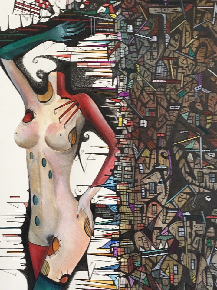 Jason Davies. This series of watercolour graphite and ink paintings were first started in 2013 but I have revamped them to today's practical level. All created on hot pressed Arches watercolour paper the female body interacting with the surreal masks of which there is over 20 in the series.