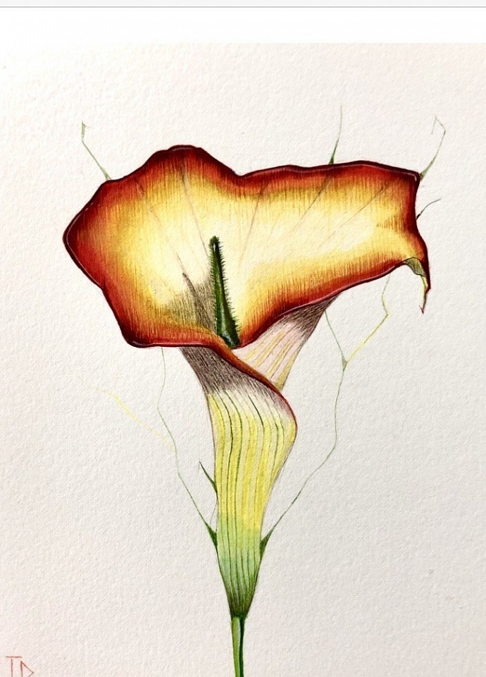 Original watercolour flowers single Lillie. 19 x 14 cm JDavies 2021.